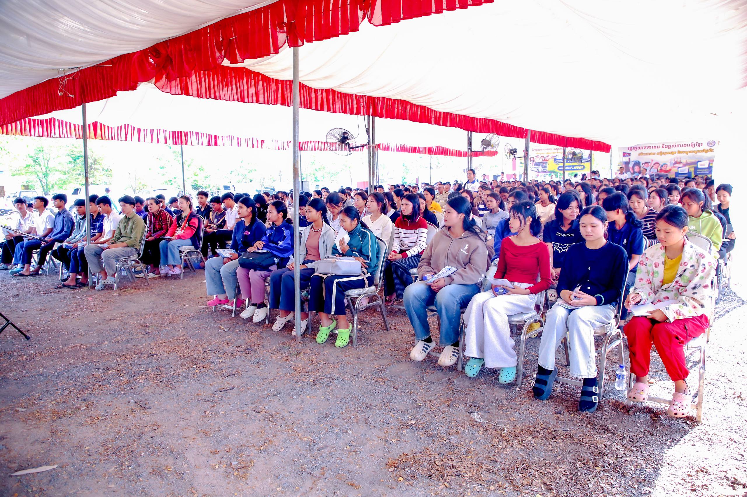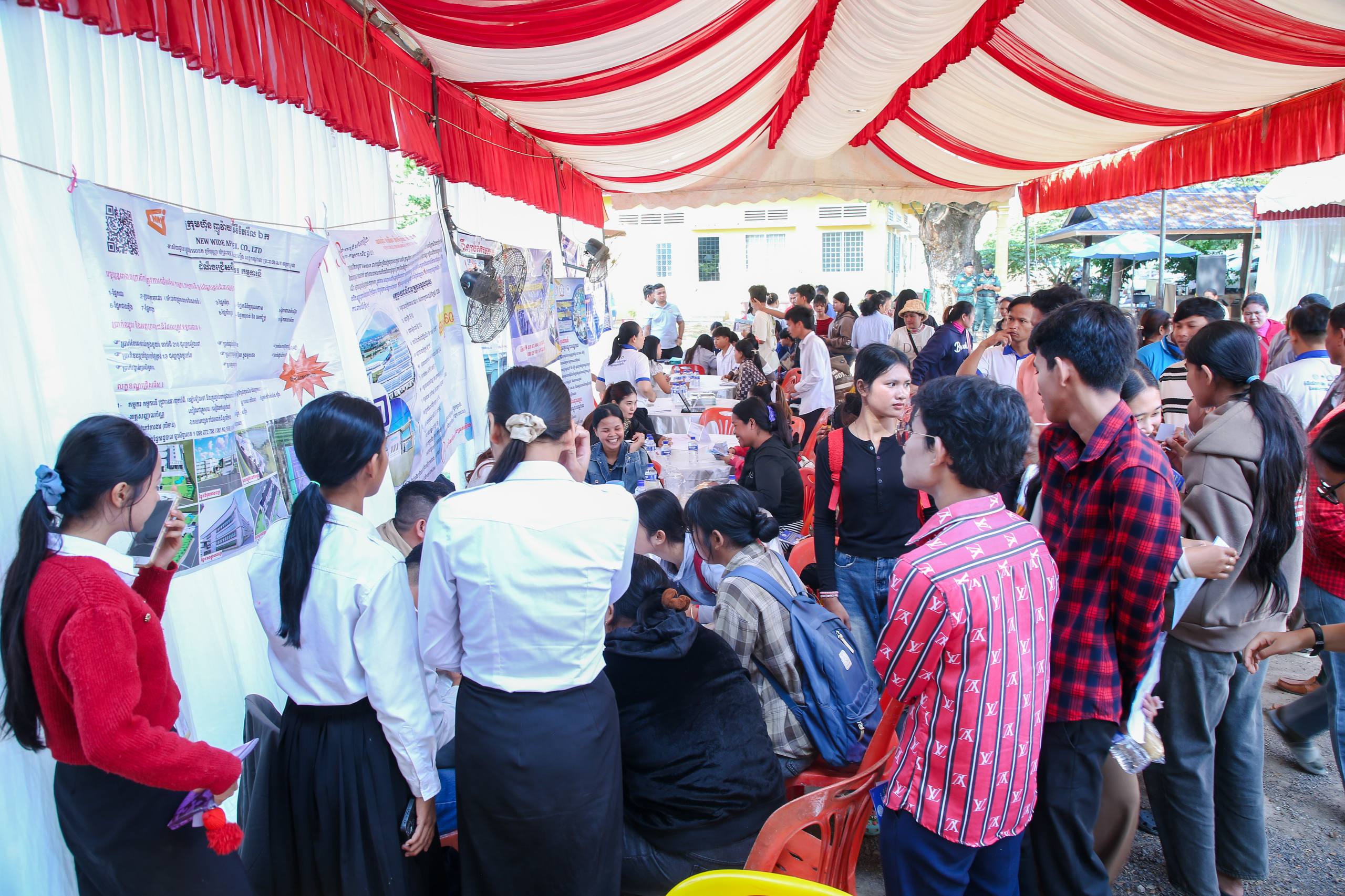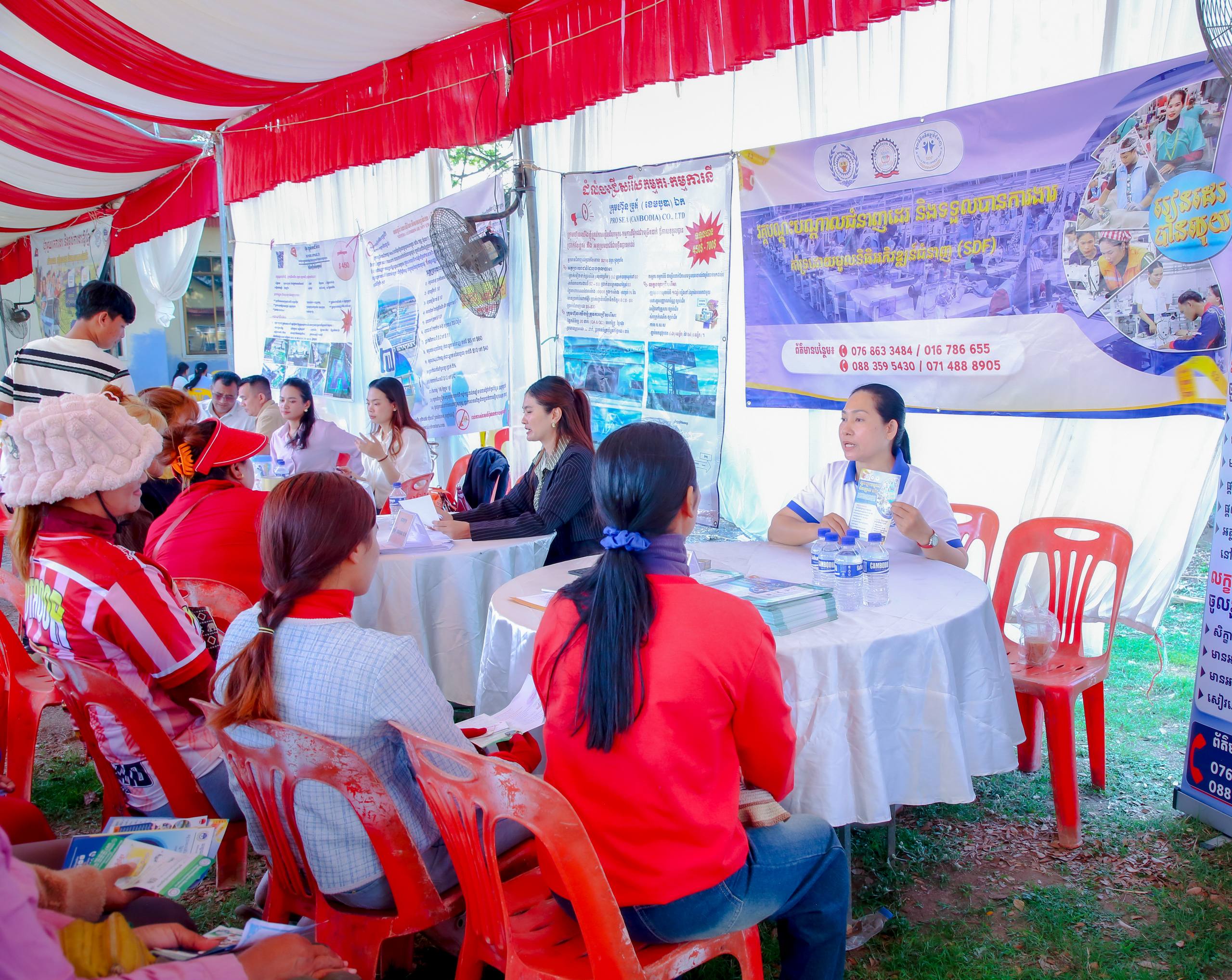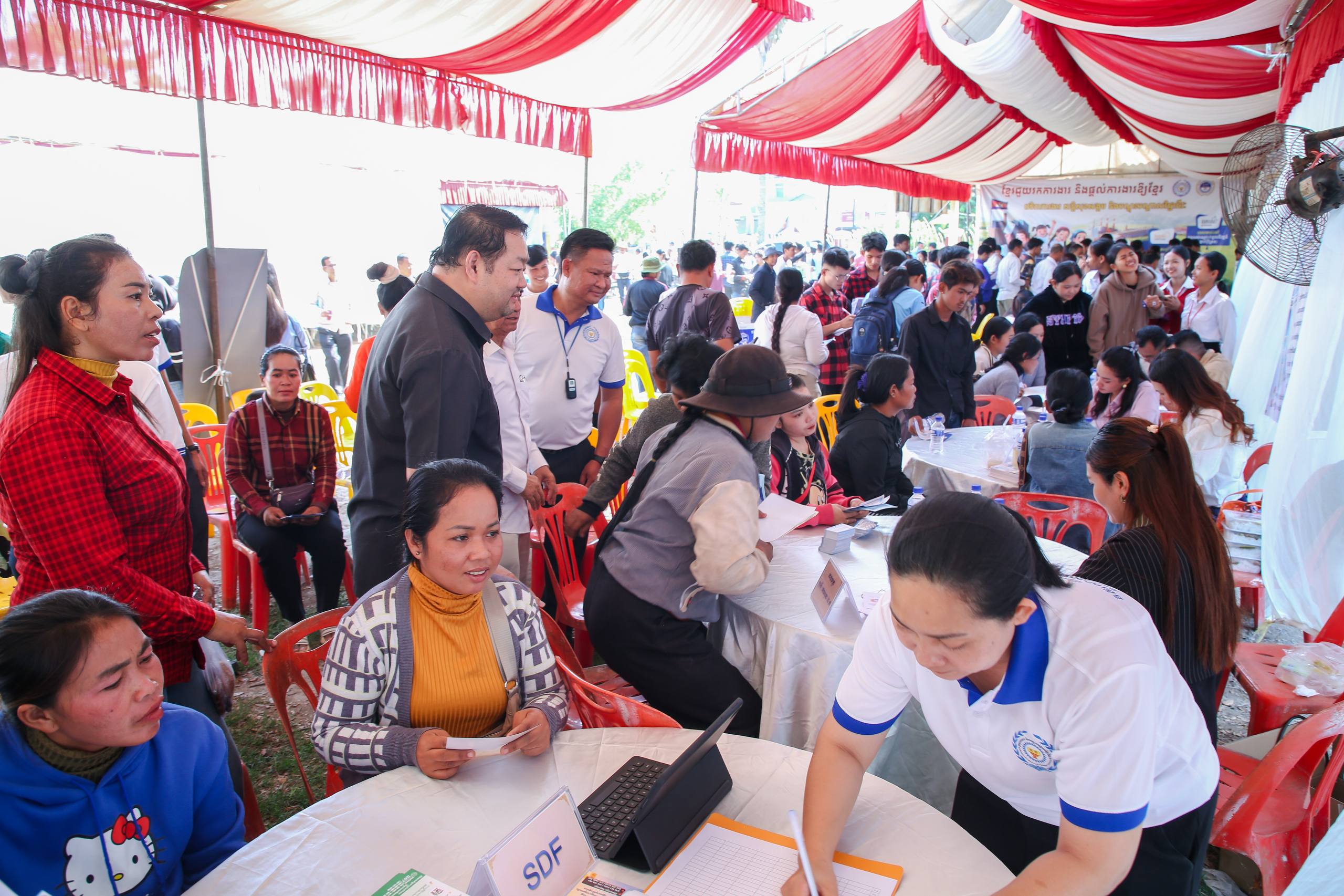 (បន្ទាយមានជ័យ)៖ រោងចក្រ សហគ្រាស និងក្រុមហ៊ុនធំៗចំនួន៤ នៅព្រឹកថ្ងៃទី១៥ ខែមីនា ឆ្នាំ២០២៦នេះ បានចូលរួមសម្ភាសន៍ជ្រើសរើសបុគ្គលិកដោយផ្ទាល់ នៅក្នុងវេទិកាការងារ សន្តិសុខសង្គម និងបណ្តុះបណ្តាលវិជ្ជាជីវៈ ដែលបានប្រព្រឹត្តទៅនៅស្រុកស្វាយចេក ខេត្តបន្ទាយមានជ័យ។ វេទិកានេះបាននាំយកឱកាសការងារចំនួនប្រមាណ ១ ០០០កន្លែង មកបង្ហាញជូនដល់ប្រជាពលរដ្ឋដែលកំពុងស្វែងរកការងារធ្វើ ក្នុងយុទ្ធនាការរបស់ក្រសួងការងារ និងបណ្តុះបណ្តាលវិជ្ជាជីវៈដែលរៀបចំឡើងជារៀងរាល់សប្តាហ៍នៅតាមមូលដ្ឋានគោលដៅ ក្រោមប្រធានបទ «ខ្មែរជួយរកការងារ និងផ្ដល់ការងារឱ្យខ្មែរ»។