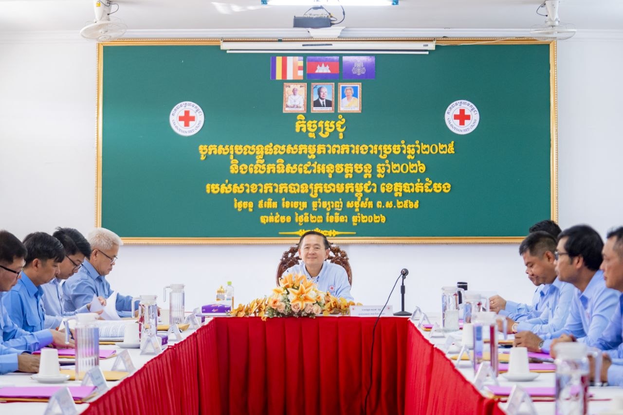 ឯកឧត្តម សុខ លូ អភិបាលខេត្តបាត់ដំបង និងជាប្រធានគណៈកម្មាធិការសាខាកាកបាទក្រហមកម្ពុជាខេត្តបាត់ដំបង នៅរសៀលថ្ងៃទី២៣ ខែមីនា ឆ្នាំ២០២៦នេះ អញ្ជើញជាអធិបតីក្នុងពិធីកិច្ចប្រជុំបូកសរុបលទ្ធផលការងារប្រចាំឆ្នាំ២០២៥ និងលើកទិសដៅអនុវត្តបន្ត។